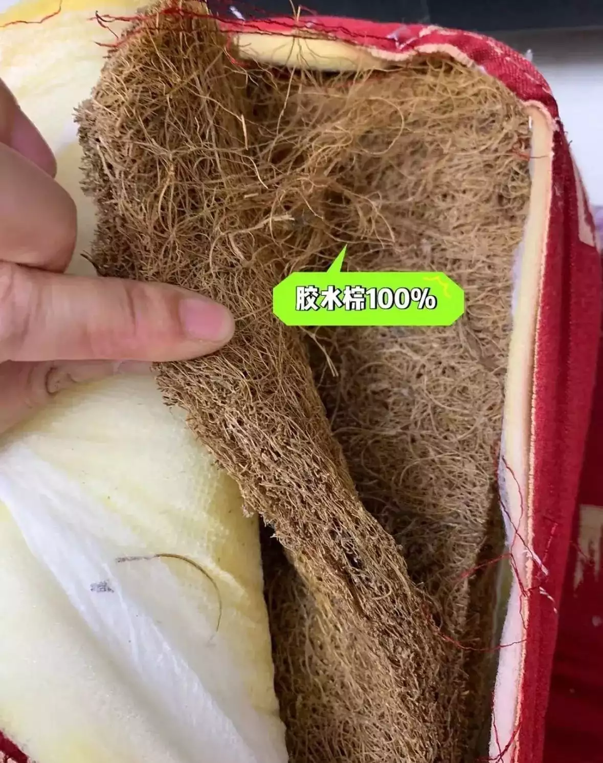 别被那种买床送床垫的噱头吸引,一般都不会是什么好货。摸着你家椰棕床垫按下去很硬很硬,层次不分明,粘在一起,恐怕也要抓紧时间换掉,满满的都是胶水!